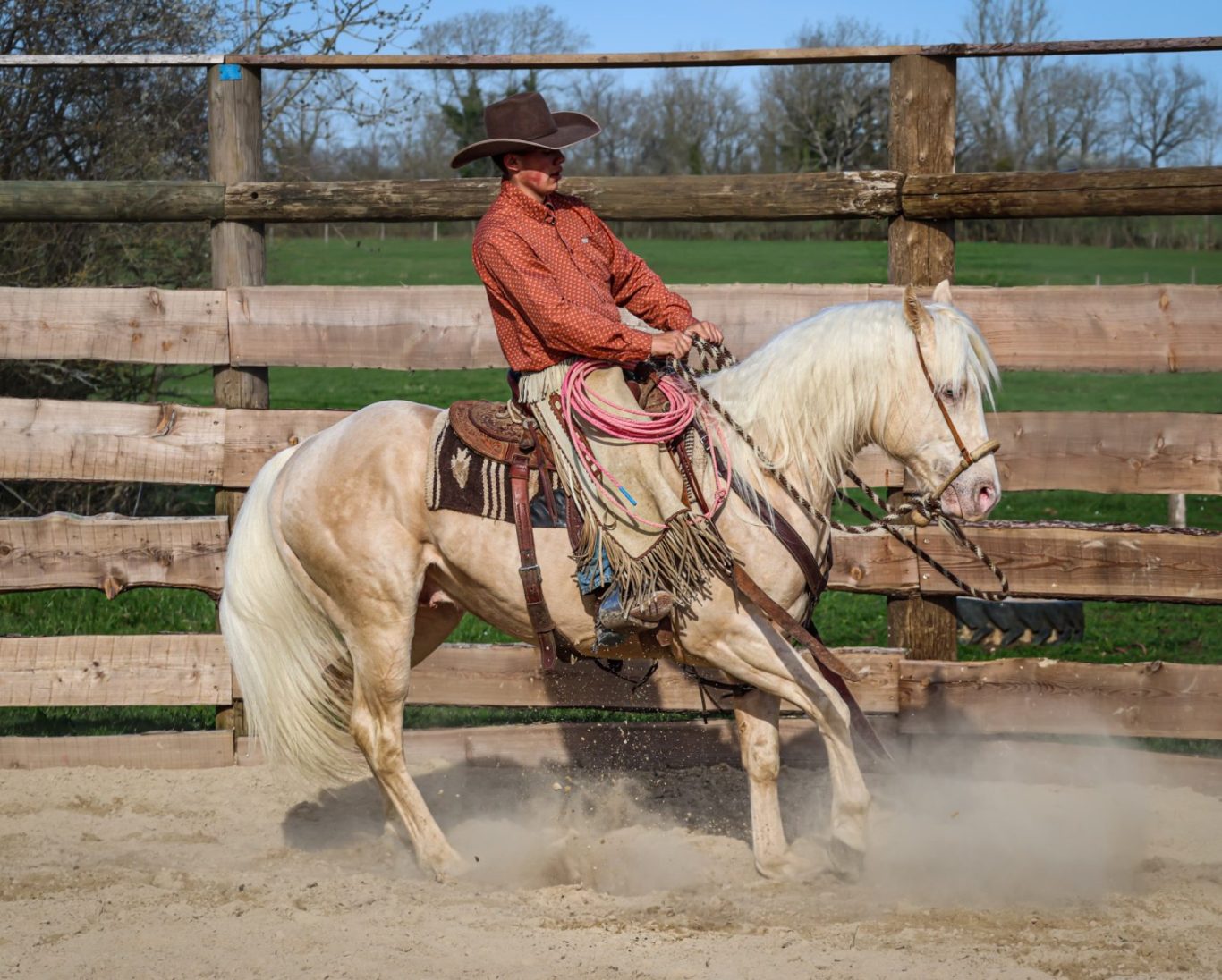 J'ai toujours habité dans le Jura, mon père et mon grand-père m'ont transmis la passion pour les chevaux. J'ai donc monté à poney, puis à cheval dès mon plus jeune âge. Avec les chevaux de mon père, je suis passé par le saut d'obstacles, la randonnée et l'endurance, avant de m'investir dans l'équitation western, et de chercher à développer mon horsemanship. On a parcouru la France pour participer à des stages avec des hommes de chevaux talentueux, français et suisses, notamment Antoine Cloux, chez qui j'ai également travaillé, Nicolas Doucet et Luc Giordano. J'ai en parallèle pu développer mon timing, feeling et équilibre avec nos chevaux à la maison. J'ai eu la chance de voir passer de nombreux chevaux, avec chacun leurs particularités, ce qui m'a permis de prendre beaucoup d'expérience. J'ai beaucoup d'intérêt pour la tradition buckaroo, le travail de ranch et le lasso. Je suis passioné par le débourrage, ainsi que la rééducation de chevaux à problèmes. À côté de l'équitation, je suis aussi très intéréssé par le matériel western, et j'ai appris à fabriquer des filets et autres pièces en cuir utilisées pour le travail des chevaux.