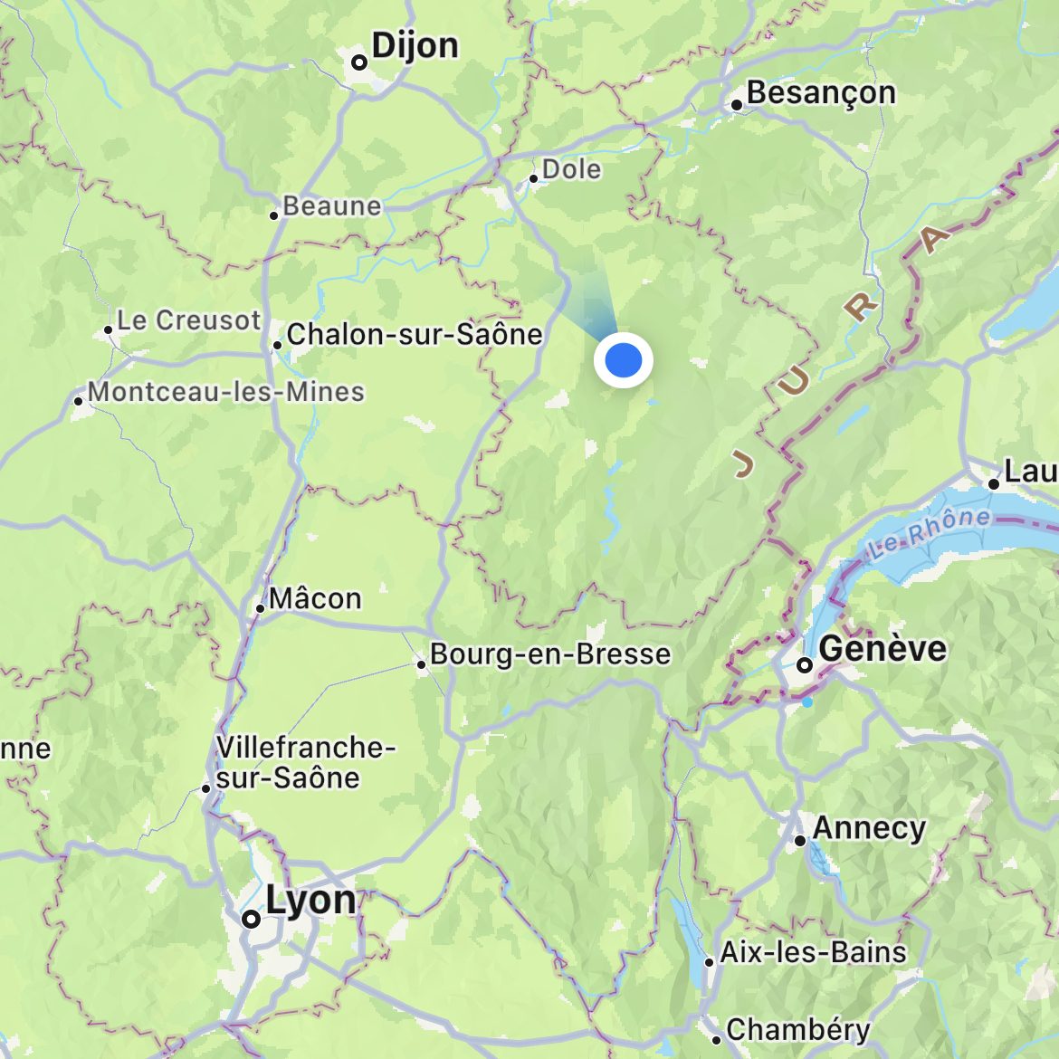 Nous sommes situés à 25 minutes de Lons le Saunier, à 1h30 de Genève et à 2h de Lyon.